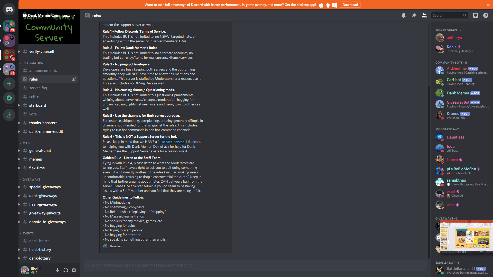 Where just you and handful of friends can spend time together... If you need any help click here: Where just you and handful of friends can spend time together. Where just you and handful of friends can spend time together. The channel you select will then appear with the rules book. The book icon next to one of your channels is your server set rules channel. Ok, let me explain.• the "rules" icon: You need to complete some steps. Press create a channel, … Go to server settings and click enable community. Toggle community for your server and set your server's rules or guidelines channel to the channel... A place that makes it easy to talk every day and hang out more often.